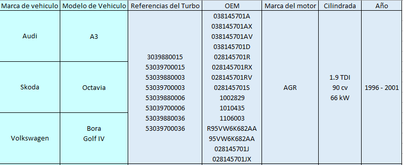 VW Bora Golf, Audi A3,S koda Octavia 1.9 90 cv (66 kW)